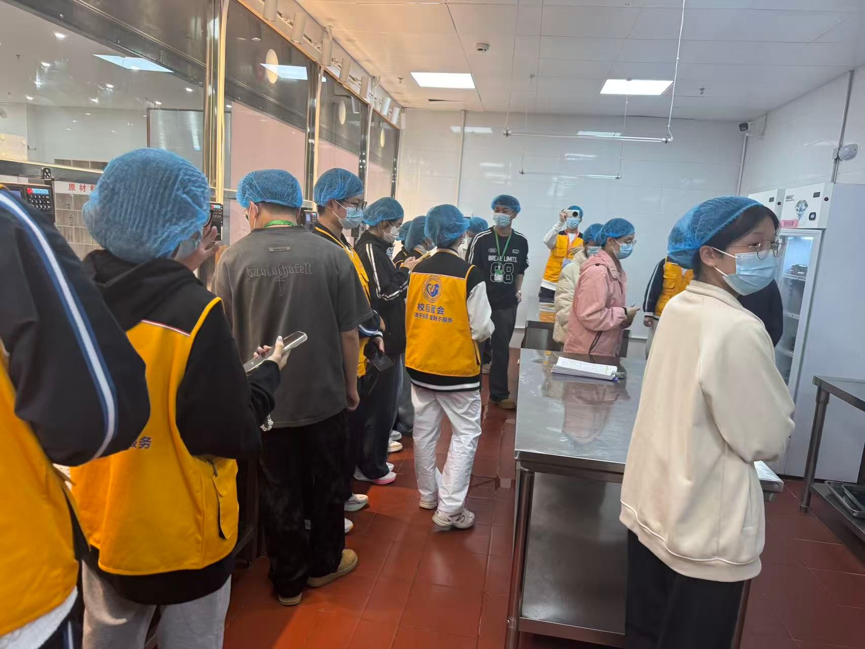 “亲眼看到蔬菜的农残检测报告和严格的三步清洗程序,我对食堂的菜更放心了。”“餐具经过高温蒸汽消毒,卫生标准超出预期!”参观过程中,同学们不时发出赞叹,并积极就菜品留样、厨余处理等细节与工作人员交流。透明化的操作流程、整洁的作业环境与员工规范的专业操作,使同学们对校园餐饮安全管理有了更直观、更深入的理解。
