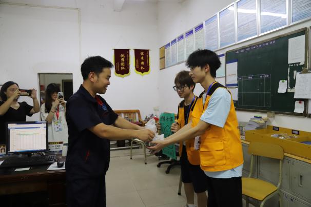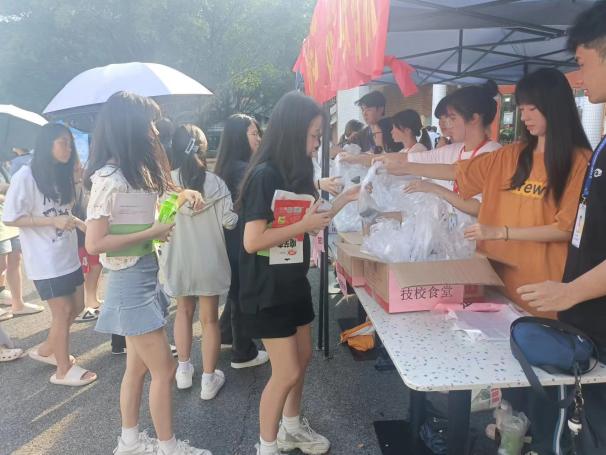 闻讯前来二区小广场领取粽子的同学们排起长队,现场欢乐祥和。教工餐厅经理将热腾腾的粽子送到给老师手中,并送上诚挚的祝福,老师们都开心不已。“烈日炎炎催麦黄,夏风微微送粽香”,后勤管理委员会的学生干部深入一线,给一线工作人员送上节日最美好的祝福。粽子虽小情谊深,裹着牵挂连着心。